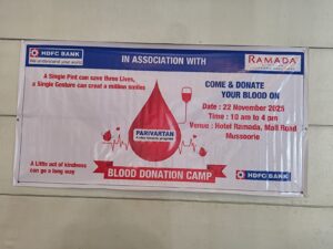 मसूरी – एचडीएफसी बैंक और रामाडा होटल ने महंत इंद्रेश अस्पताल के रक्त बैंक के सहयोग से रक्तदान शिविर का सफल आयोजन किया, जिसमें कुल 46 यूनिट रक्त एकत्रित किया गया। रक्त दान शिविर रामाडा होटल मसूरी के सभागार मे आयोजित किया गया, जिसका उद्देश्य समाज में रक्तदान के महत्व को बढ़ावा देना था।